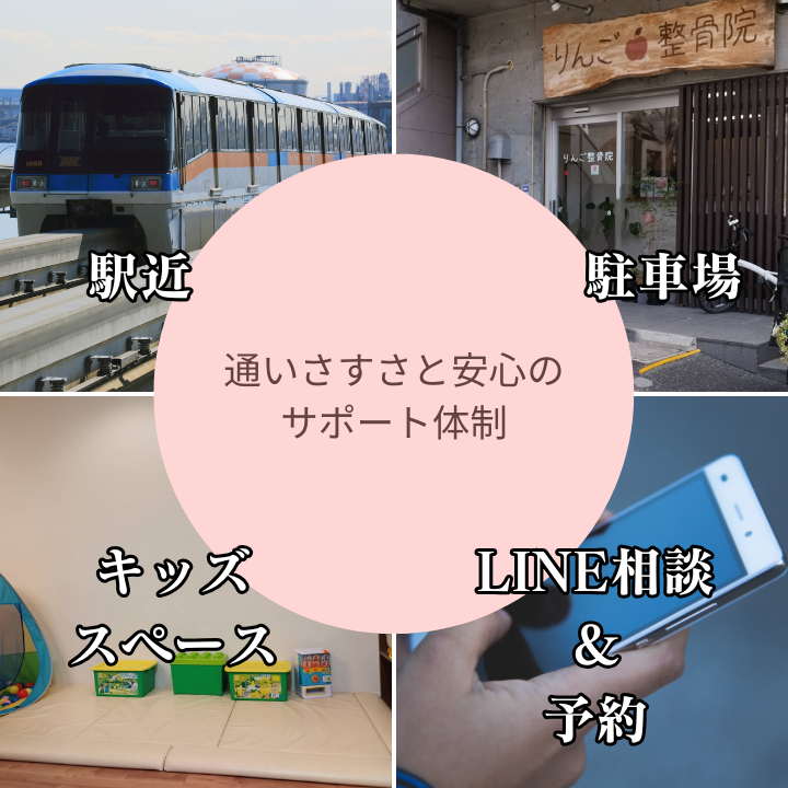 そのお悩み、実は”身体の使い方のクセ”や”血流を圧迫している”ことが原因かもしれません。りんご整骨院では【根本原因の特定と再発しない身体づくり】に力を入れています。