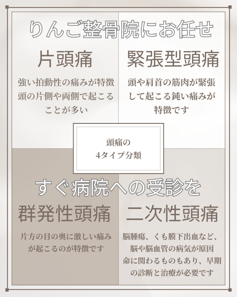 ここでは、 日常で繰り返し起こりやすい一次性頭痛についてお話します。