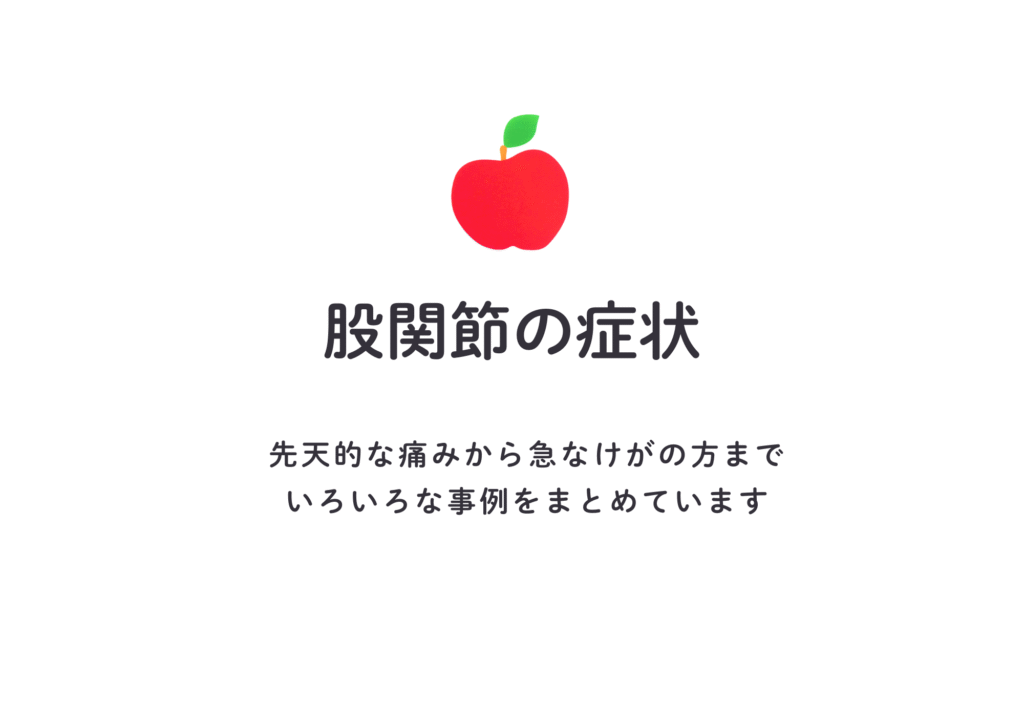 整形外科で先天的(生まれつき)な股関節の異常による痛みとのこと。